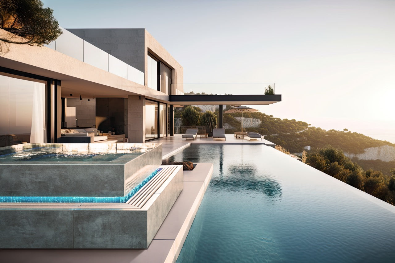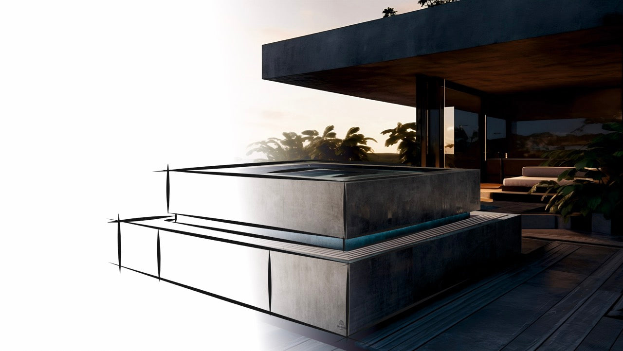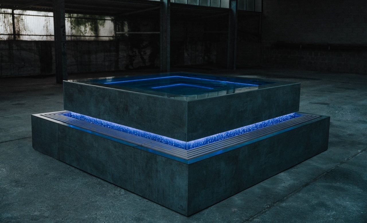 Circumferential waterfalls on the outer walls allow the water to circulate endlessly
