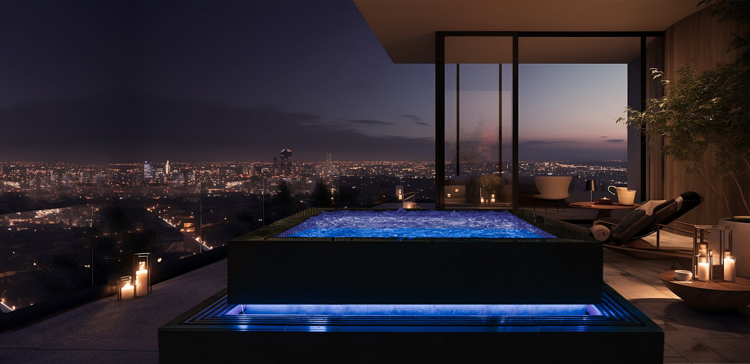 The Chronos Cube houses 18 powerful massage jets in three groups of V-design. They embody the perfect symbiosis of aesthetics and relaxation.