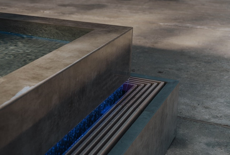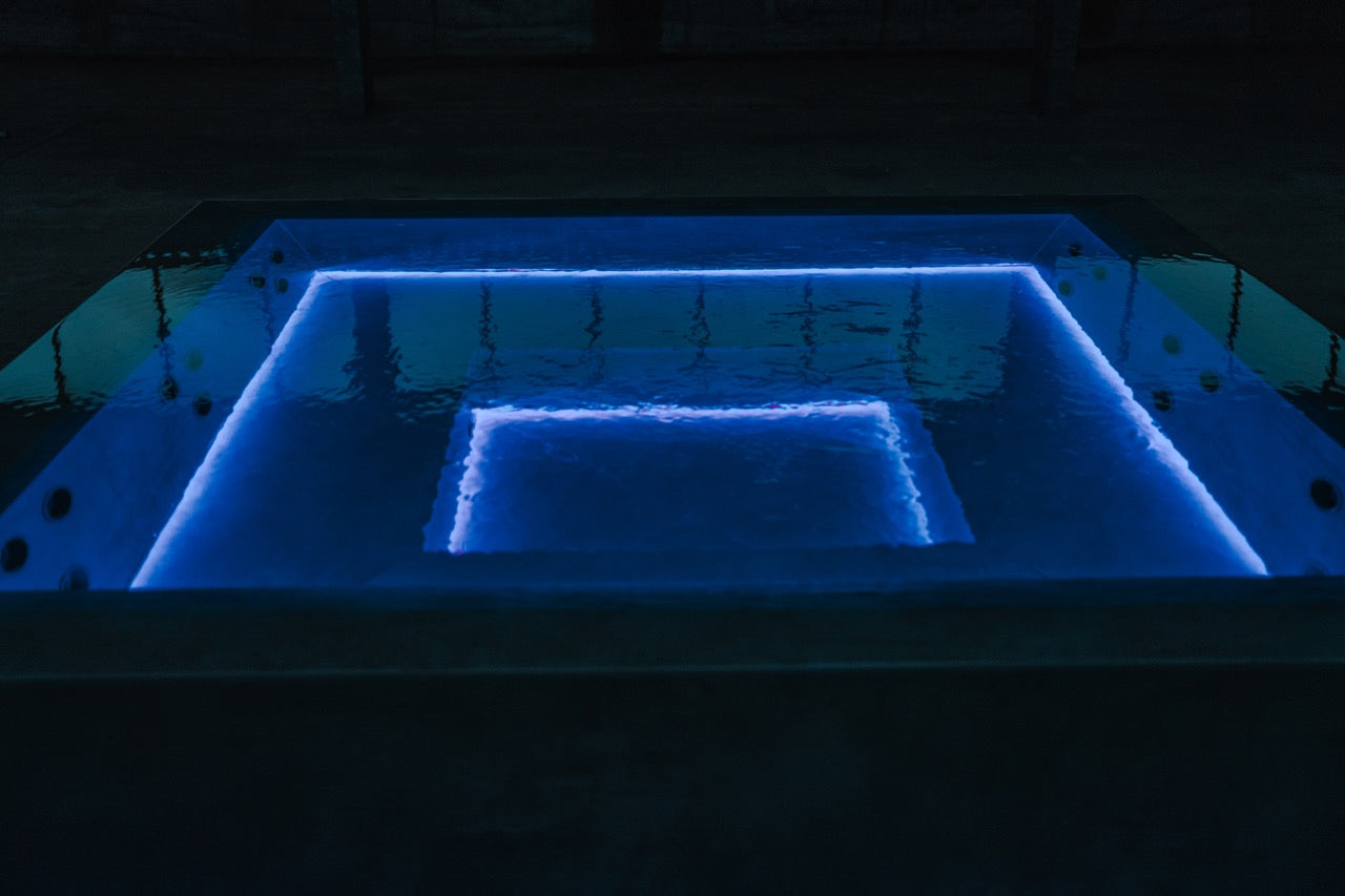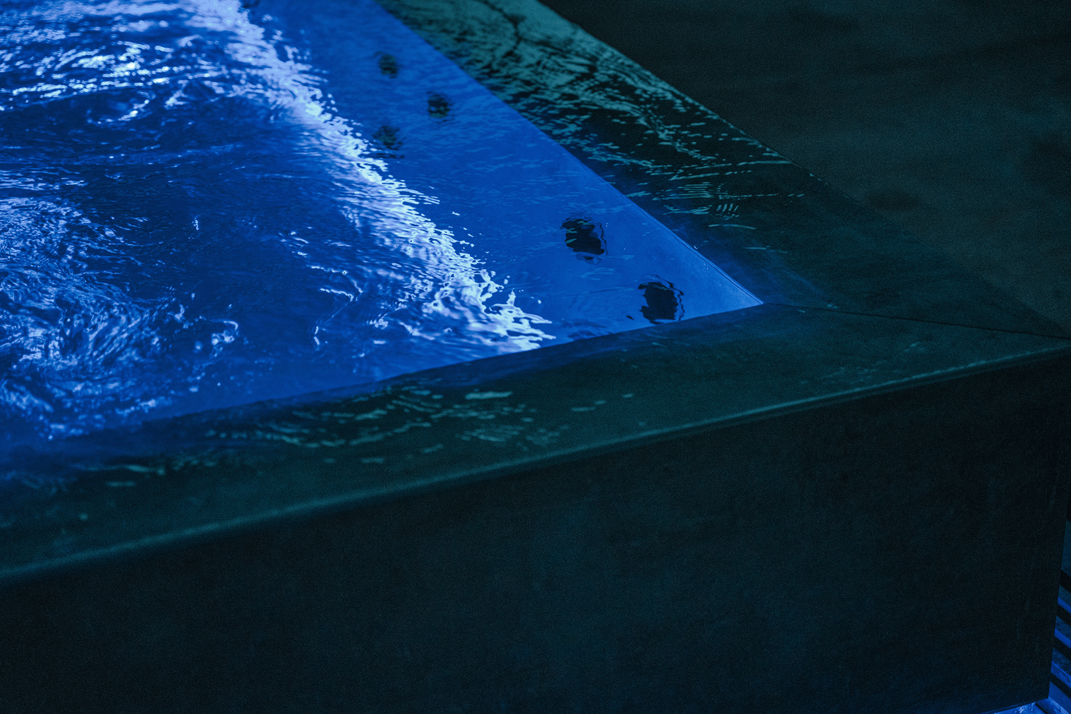 这些长凳提供了一个绝佳的机会,可以坐在瀑布旁或将它们用作进入 Chronos Cube 的舒适入口。在瀑布旁放松身心,晶莹剔透的温水从您的背上流下。